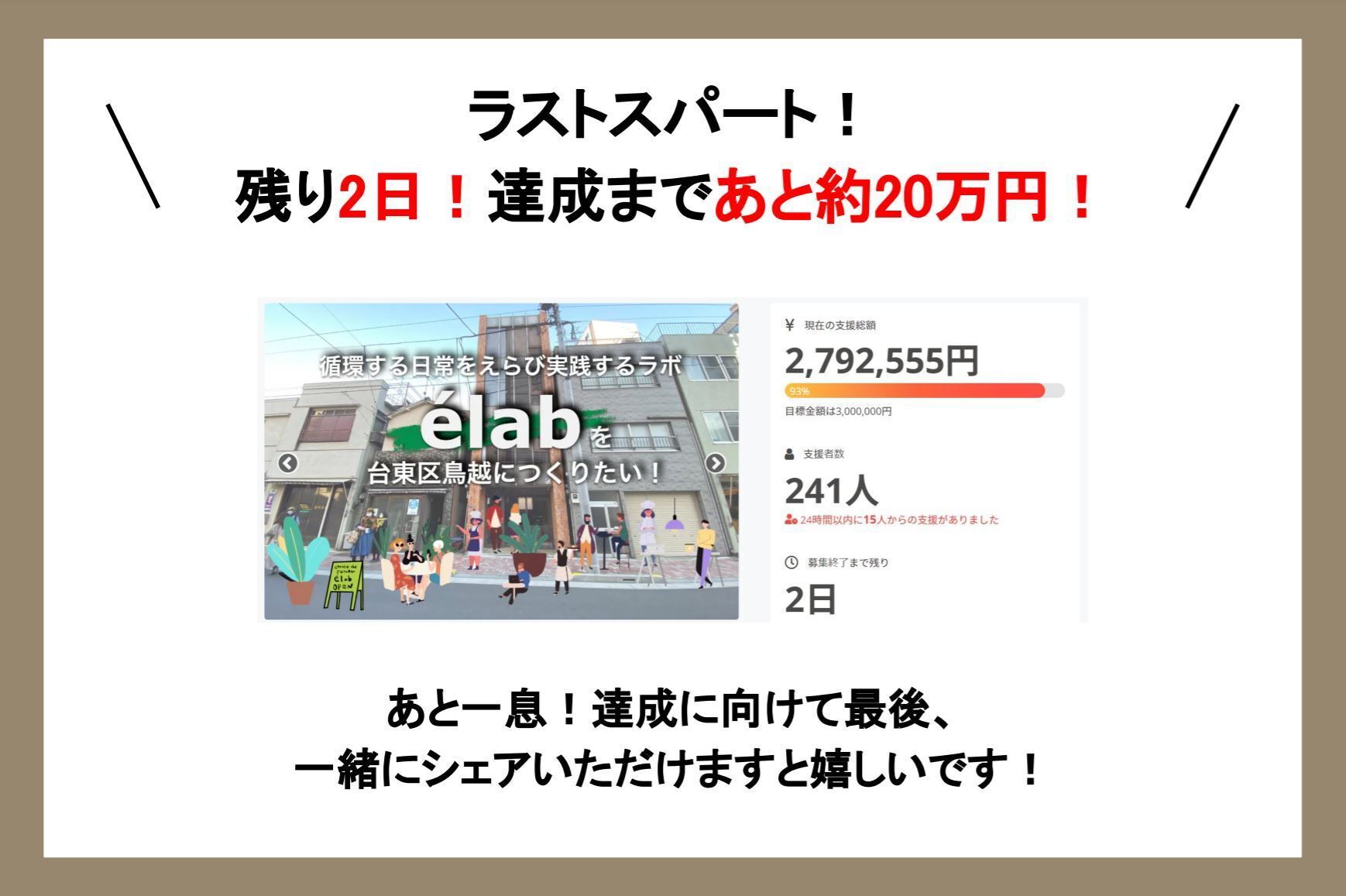 皆さんこんにちは!fogの大垣です。今日もとても暑かった東京ですが、皆さんの地域はいかがでしょうか。プロジェクト終了までいよいよ【残り3日】となりました!現時点でなんと91%<2,742,200円>に到達。あと約25万円...!昨晩から一気にまた額が伸びております。皆さん本当にありがとうございます。残りわずかとなりましたが、引き続きどうぞよろしくお願いいたします!本日は、リターン「薬草使によるélab限定薬草大学オンライン講座」のご紹介です!担当するのは野趣メンバーかつ{tabel}代表、新田理恵さん。以前ブレンドティーのご紹介の際に書きましたが、理恵さんは現在大学院にも通い中。先日は忙しい合間を縫って、大学帰りにélabへスイカを届けに来てくださいました涙 対面でお会いできるのは久しぶりだったので嬉しいひと時!今一度リターンの背景を。理恵さんは、日本古来から生活に根付いてきた薬草文化を「薬草茶」として取り入れ、無理なく続けられる食のアップデートを行うべく伝統茶のブランド{tabel(たべる)}を立ち上げました。それだけでなく2018年からは、薬草について知識からも学べる場「薬草大学NORM(のーむ)」を手がけています。今回のリターンは、その「NORM」から派生して、élab限定の特別企画としてお送りするというものです。(NORMのHP)理恵さんから直接頂いた、リターンについての説明はこちら!ーーーーーーーーーーーーーーーーーー◆élab的な要素は?薬草茶だけでなく、ものや経済が心地よく循環する社会や食品、お仕事の仕方などについてのお話ができたらなと思っています◎先日行った目黒区美術館の日本の伝統パッケージ展も涙が浮かぶほど感動したので、あの圧倒的美しさと、土に飲み込まれ、またいのちとして再生する生命の強さや尊さを感じるものづくりについても触れたいです!◆楽しんでもらいたいポイント一方的にゲストやナビゲーターがしゃべるというより、みんなでお話したり考えたりする時間も取ったりしながら、わいわい楽しく開催できたらなと思っています◎もちろん、耳だけ参加も歓迎です◎お気軽にぜひご参加ください♫◆自由に一言!想像以上にたくさんの方から応援していただいたり、「良い活動ですね!気になってます!」と声をかけていただいたりして、こういう場の必要性や意義をしみじみと感じています◎みんなで作っていくムーヴメントにできたらおもしろいと思うので、ぜひご一緒いただけたら嬉しいです◎ーーーーーーーーーーーーーーーーーー本も出していらっしゃるほどの理恵さんの深い知識を、これまでの経験等を踏まえて聞けるチャンス。お楽しみに!