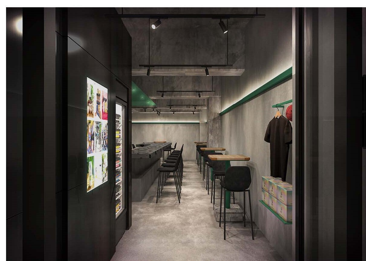 イノベーションを起こす象徴的なエレメントの配置で、上質でありながらも気兼ねないコミュニケーションを提供していく。この空間では革新的なビールと色彩豊かなパッケージ、 人々の熱量が浮かび上がる。 創造性を高めるアートのようなプリミティブな空間は、 訪れた人々をカーボンブリュースの世界を楽しむひとときに誘い込む】