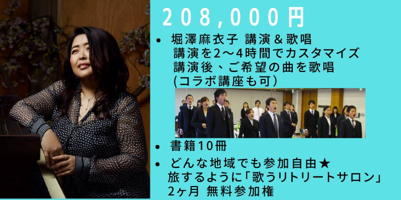 講演後、ご希望の曲を歌唱も可能(アカペラ・マイクあり どちらも可能)