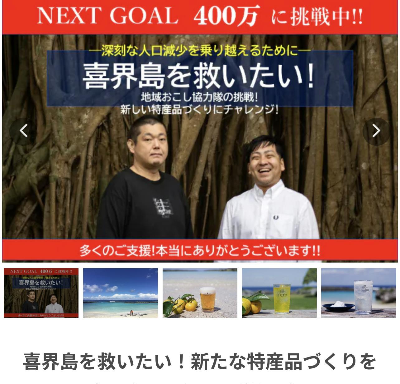 2023/06/13 11:47みなさま、こんにちは!お久しぶりです。横浜から喜界島へ移住し、その際にみなさまにたくさんたくさんご支援いただいた、ぴあやの こと 赤松あやのです。おかげさまで、移住生活ももうすぐ丸二年を迎えようとしており、今ではみなさまのおかげで島に運んでくることのできたグランドピアノを囲んで毎月"おうちコンサート"を開催するまでになりました。地域の方にもたくさん助けていただき、毎日幸せに暮らしております。(YouTube等で島暮らしを発信しております。二羽のにわとりが家族になりました)さてさて、今日は島で出会った最高の仲間がスタートさせた、新しい取り組みについてご紹介したく、久しぶりに記事を投稿しました。https://camp-fire.jp/projects/view/663840わたしより2ヶ月ちょっと早く喜界島に移住をした"地域おこし協力隊"の一員として活躍する谷川理さんと、彼の小学校同級生藤倉周さんが立ち上げた会社"HOWBE"彼らがこの度、島の素材を使って新しい特産品を作ろう!!と動いています。●島みかんのクラフトビール●島の塩を使った塩サイダー●島みかんのエナジードリンク喜界島中のみんなが、この新製品の誕生を間近にして、ワクワクに包まれています。クラウドファンディングにも挑戦されていますので、ご支援いただくことでこの新製品の誕生までのワクワクを一緒に味わって頂くことが出来ます!^_^あと7日でクラウドファンディングネクストゴールに向けての挑戦が終了となります。"喜界島"に興味を持った方"地域おこし"や"移住"に興味のある方"頑張る人を応援したい!"方etcぜひぜひ、ご一読の上、応援していただけると嬉しいです。どうぞよろしくお願いいたします!!https://camp-fire.jp/projects/view/663840 もっと見る