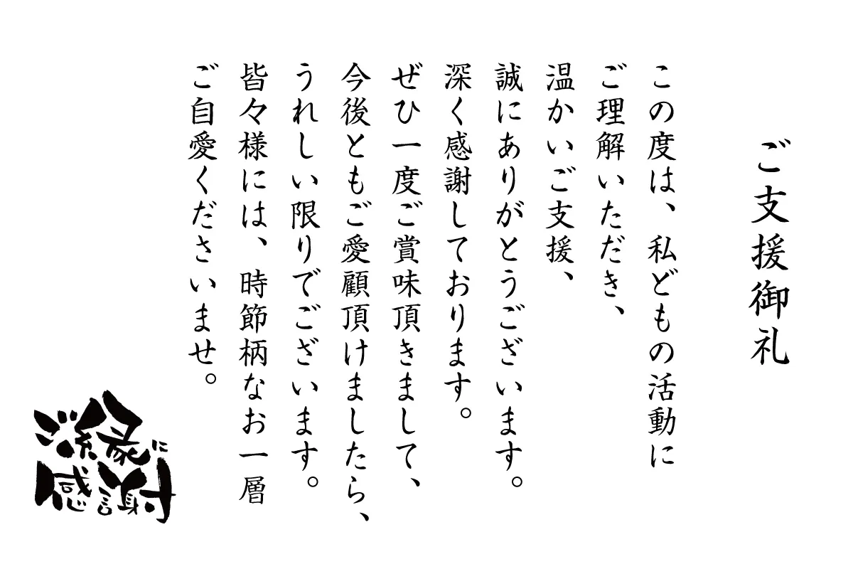 この度は多くのご支援誠にありがとうございました。
