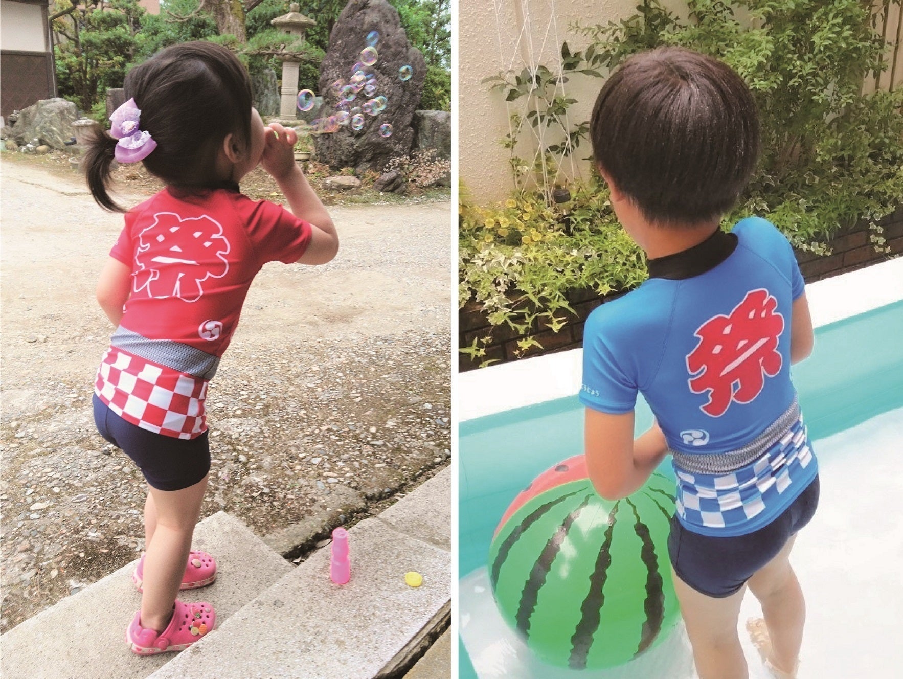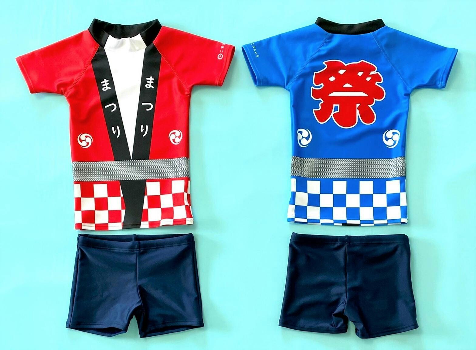昨年からのコロナ禍の中、さまざまなお祭りやイベントが中止となっている世の中ですが、弊社が企画しましたこの水着をお子様に着ていただく事で、ご家族の皆様とお祭り気分になって頂ければ幸いです。周りのみんなもきっと笑顔になれるはずです。