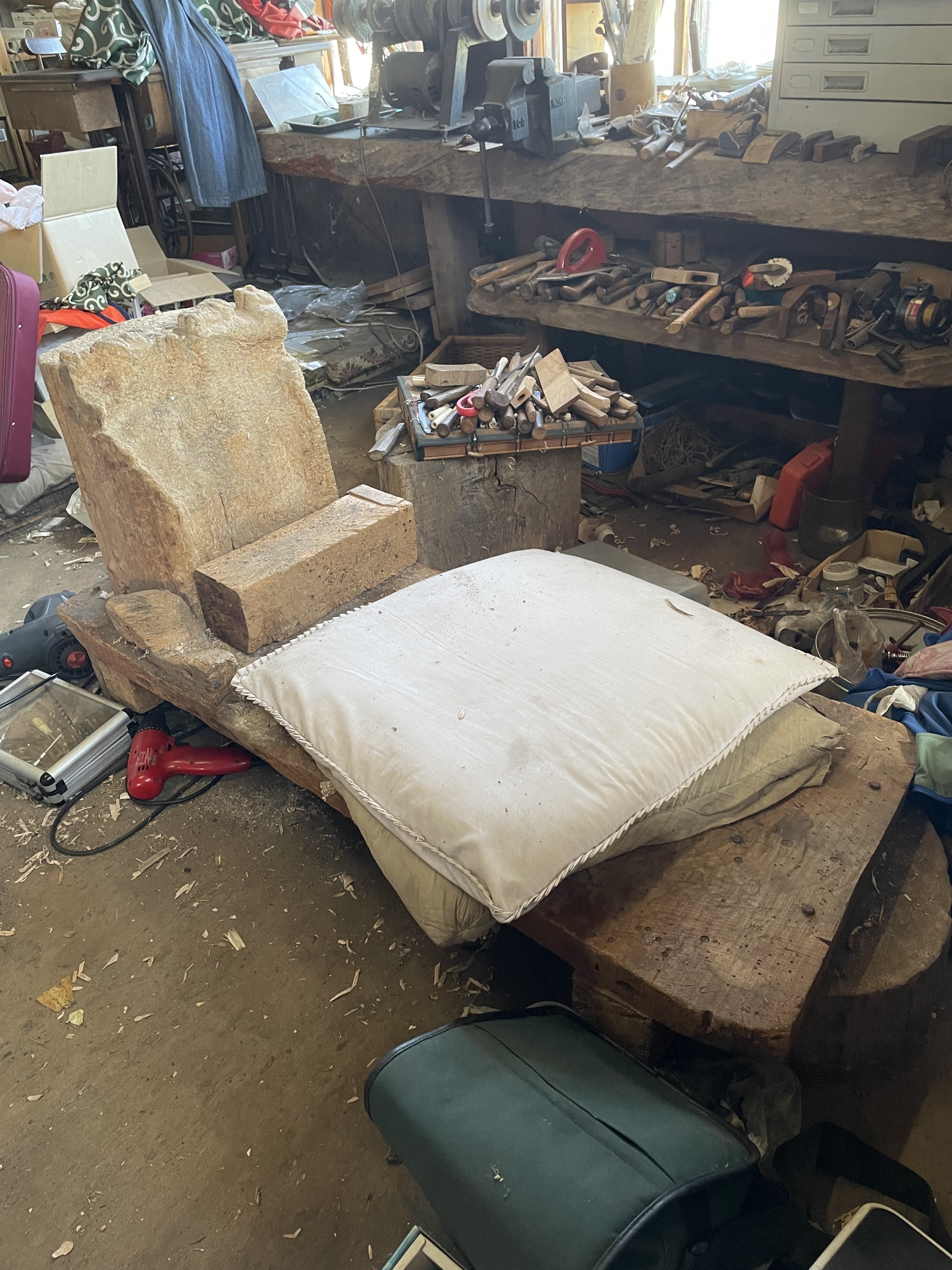 ヤナギの木で作った太八さんの相棒とも言うべき作業台の馬を工房からお借りしました^_^