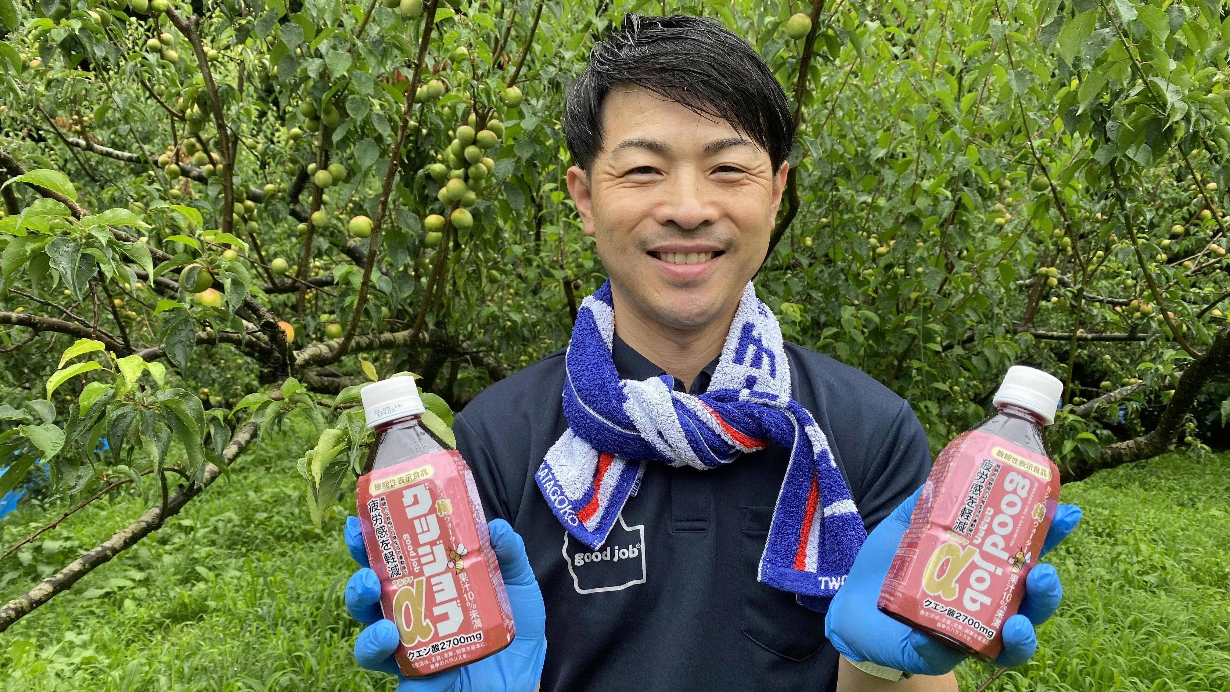 既に「グッジョブα」の原材料となる「紅映梅」の収穫体験なども実施し、SNSや動画を通して発信いただいております。