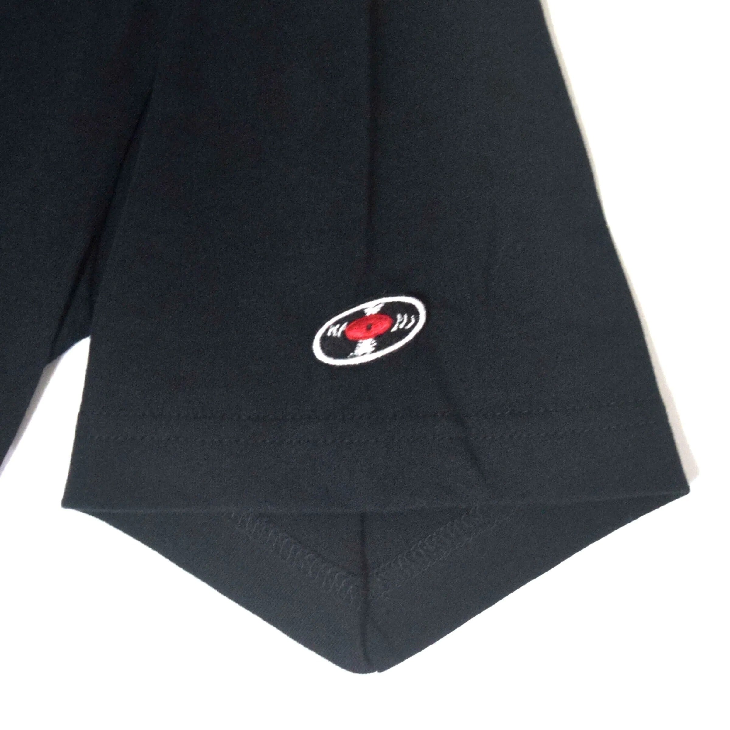 多分ですが、記憶があるうちにレコードと親密に関わった最後の世代の最後くらいだと思います。「レコード」をブランドトレードマークに選んだのはデジタルが進んでいるこの世の中で、真逆ですが「アナログ」の象徴でもあり、どの国の人が見てもパッと見て視認できるからです。自身もクラブにはよく行く(仕事が多くなるとなかなかですが、全く行かない方に比べれば10代から蓄積量的にもそこそこです)のでDJの方がレコードを回している姿は10代から焼きついているので、親近感もあります。ジャンルを特定するモチーフでもないので、服飾デザイン学校に通っている時から構想には入っていました。クラブで活躍されているDJさんの良さを引き立てるにも申し分のないアイコンと思います。斜めに傾けているところが実はデザインポイントです。奥行きを持たせて傾けているのは訳があるんです。盤面ラベルの色も多種あります。自身だけかもですがDJ=アンダーグラウンドという感覚は全くないです。それは欧米諸国に行けば(最近は他の地域も)ある程度、理由がわかるはずです。ダンス文化が無い国だからそう感じてしまうのかもしれません。ふつふつとしたこのコロナ禍を切り裂いていくそんなアイコンでありたいです。