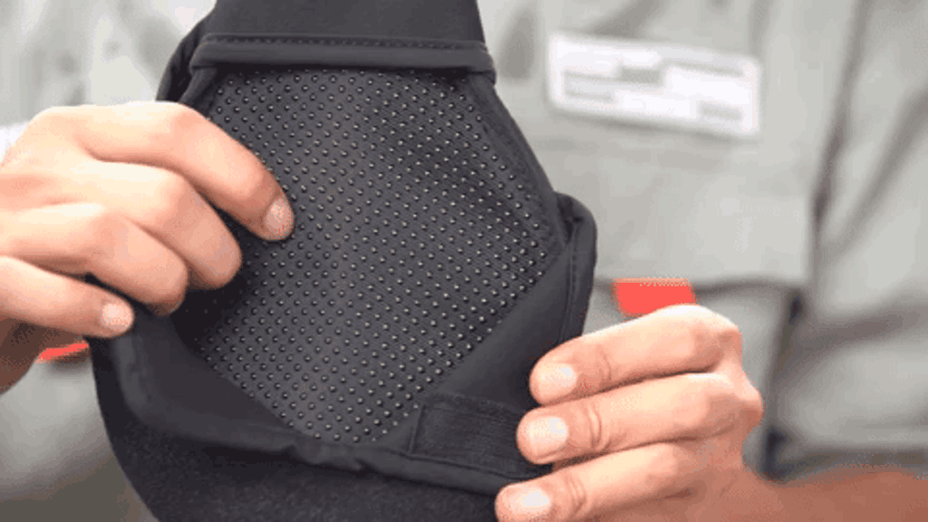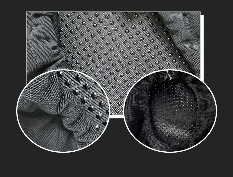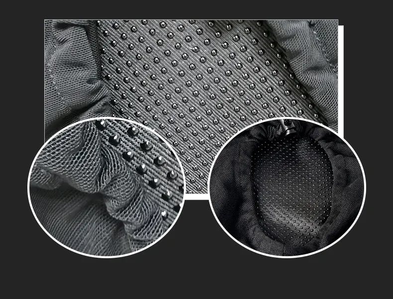 注入した空気によって、エアクッションがふわふわ!素材は耐摩耗性の強いライクラ材を使用し、裏側には滑り止めがついているため、丈夫で安定した装着感を体感できます!