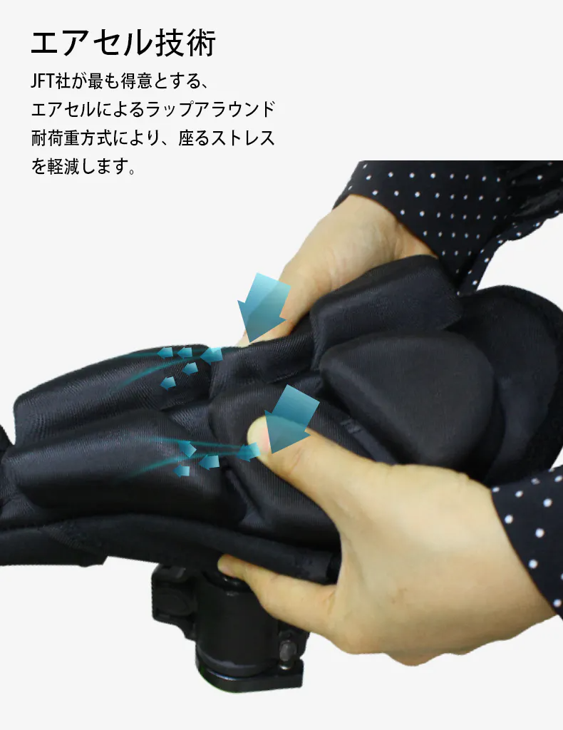 そして今回の自転車クッションも、もちろんJFTの一番得意としている反重力技術「エアセルラップアラウンド耐荷重方式」を使用!