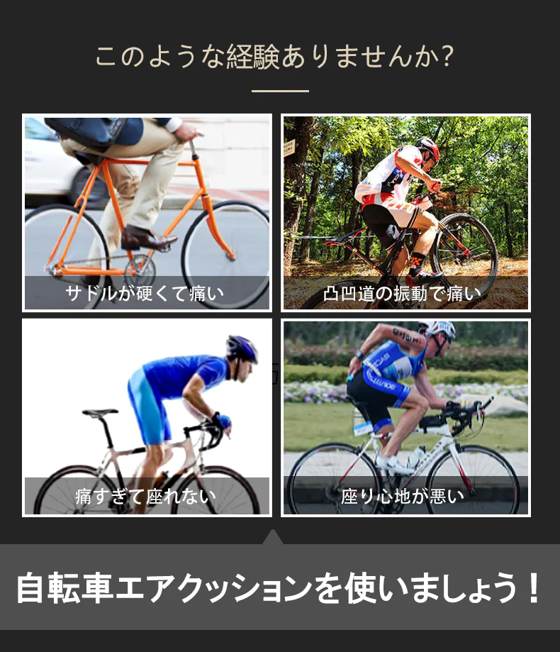 自転車3Dエアクッションを使用することによって、快適に自転車走行できます!