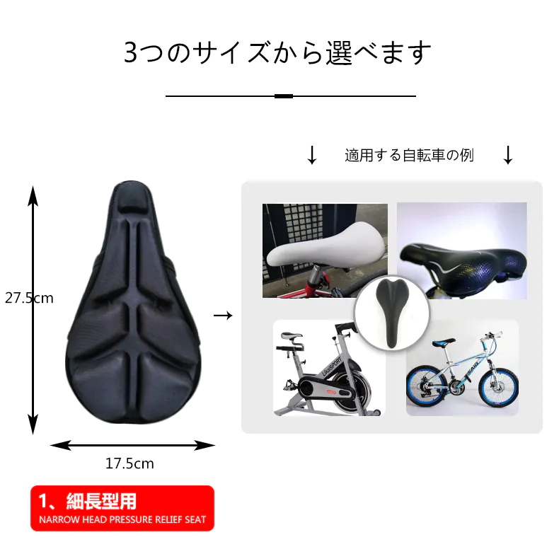サイズは3種で用意。自転車のサドルの種類に合わせてお選びいただくことができます。