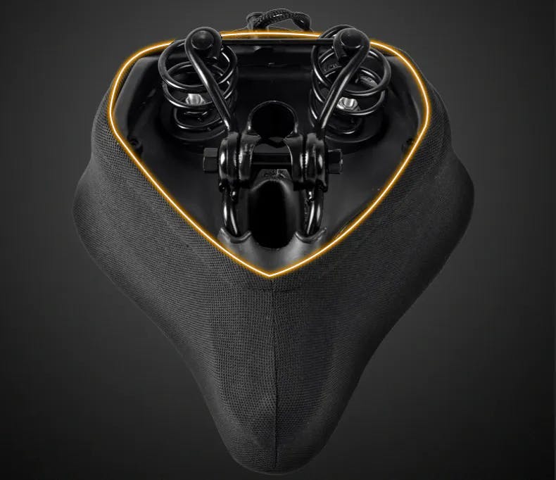 エアクッションがサドル全体を覆い、直接触れるお尻を守ります。