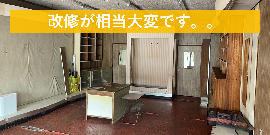 - ②本屋の改装工事:商店街のテナントを借りて本屋を運営するため、そのテナントの傷んだ床や壁を改装します。