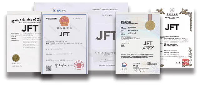 30年以上の開発経験を持ち、JFTの工場もISO9002、ISO9001、ISO2000などの国際認証を取得しており、その功績と実力を中国に評価され、2020年には中国最大のテレビ局CCTVに優秀ブランド「品牌强国」と評価されました。