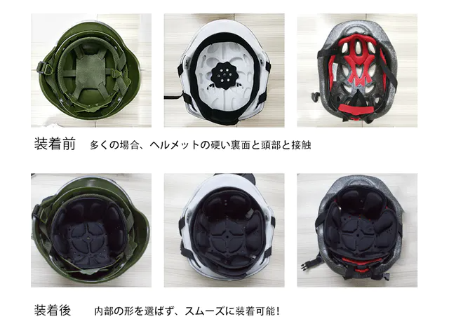ヘルメットは様々な種類があり、裏側はいろんな種類がありますが、ヘルメットクッションは入れるだけですぐに使用が可能!複数のヘルメットをお持ちの方にも、使いまわしができます!