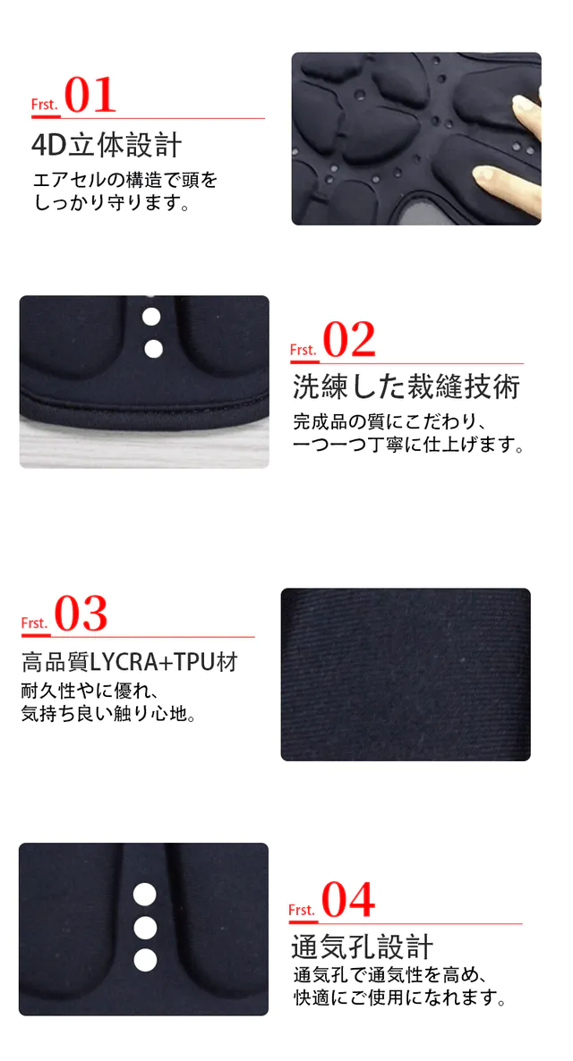 より安全に、より清潔感のある着用ができるよう、JFTは4Dヘルメットクッション【Head Fit】を開発しました。