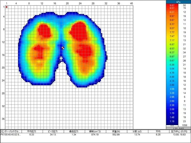 画像にありますように、Head Fitを使っていないときのピーク圧力が34.13に対し、使用後17.43と、49%の力が分散されました。