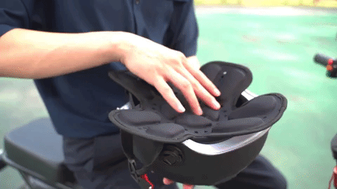 クッションをヘルメット内に入れるだけ!わずか1,2秒の時間ですぐにご使用になれます。