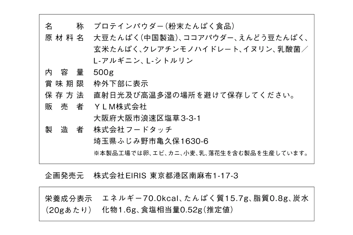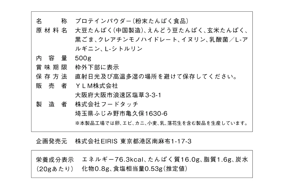 企画発売元:株式会社EIRIS/販売者:YLM株式会社/製造者:株式会社フードタッチ