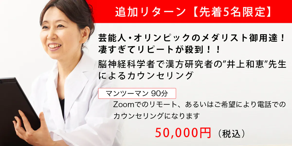⑤【先着5名限定】脳神経科学者で漢方研究者の井上和恵先生によるカウンセリング