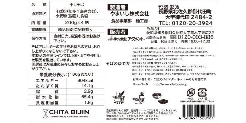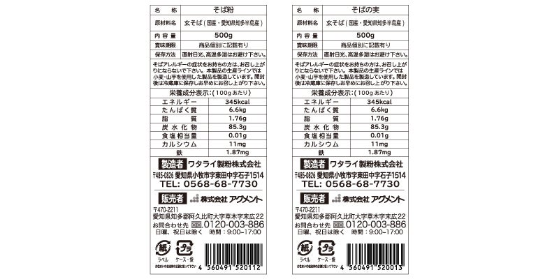・知多美人そば 干しそば400g、そば粉500g、そばの実500gをセットにしました。