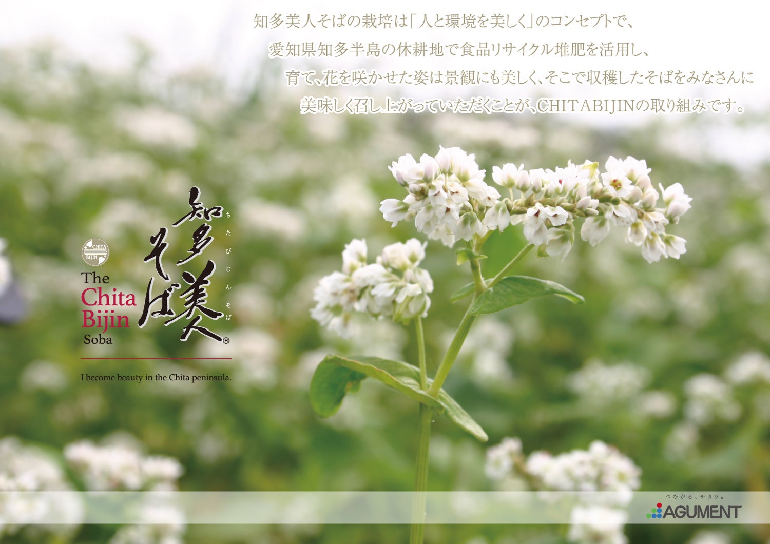 私たちが知多半島で栽培しているそばは、「人と環境を美しく」をコンセプトに、地域の環境、景観、人、それぞれが美しくなる願いをこめた「知多美人そば」というネーミングで地域で親しまれています。