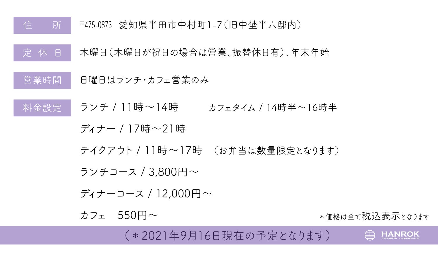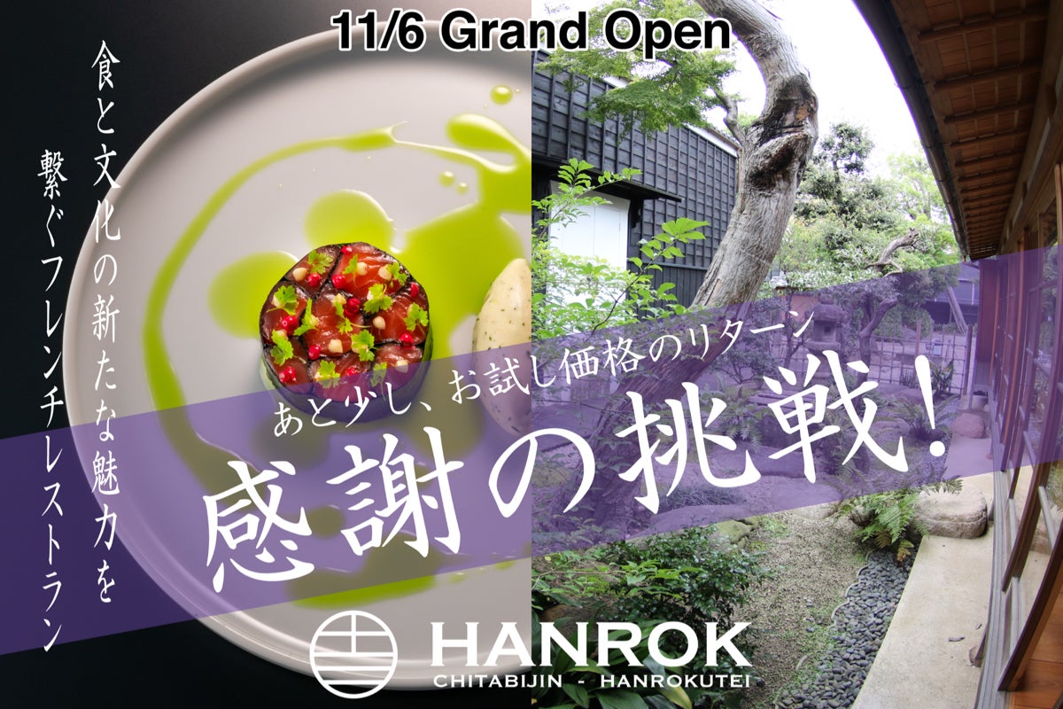 この想いを全てHANROKの料理やおもてなしで表現し、お客様にお伝えしていく。地元密着で知多半島の魅力を世界に発信して行く、そんなHANROKへのご支援をどうぞ宜しくお願い申し上げます。