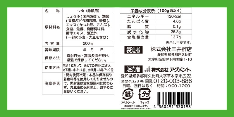 【つゆの品質表示に関して、文字数規制の為、添付の画像にてご確認願います】