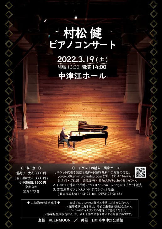 3/19 (土) 大分・日田 中津江ホール(日田市中津江村栃野4344-1)