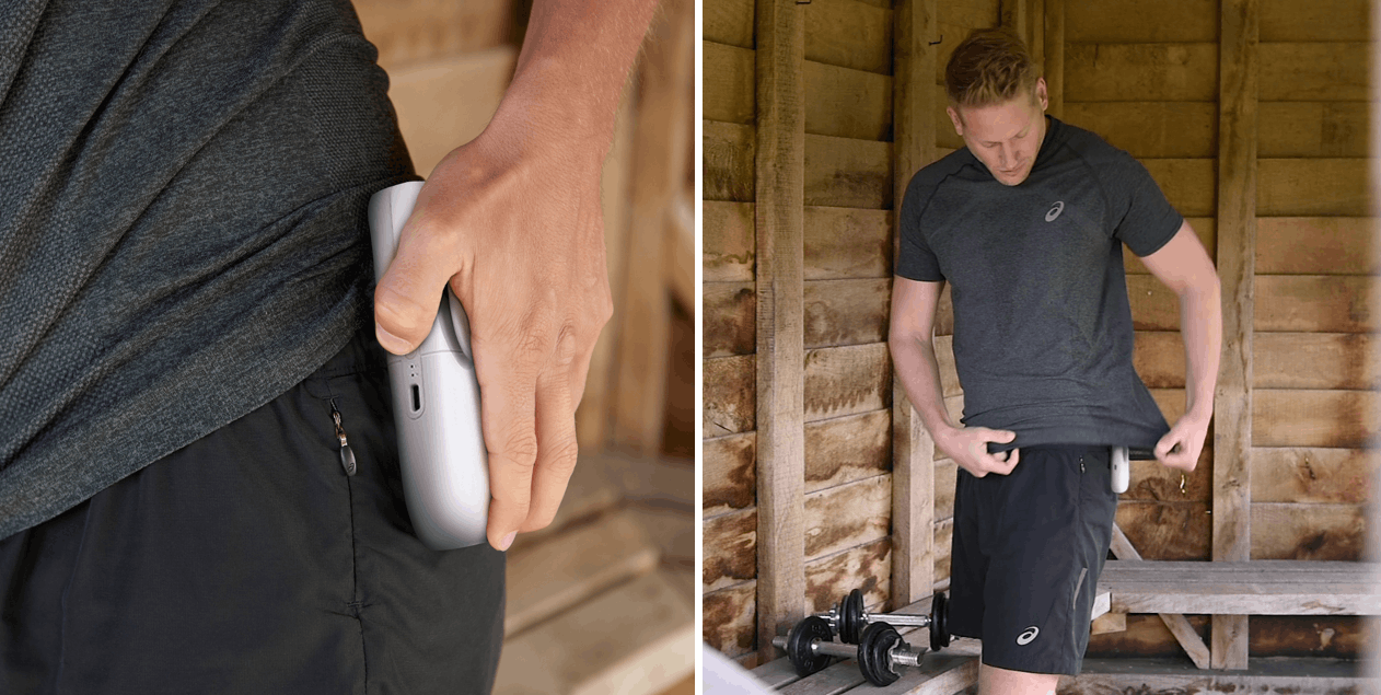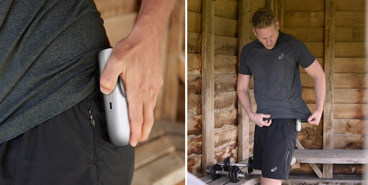 Cool Human®がこれまで発売してきた充電式ハンズフリークーラーは、ベルトに引っ掛けシャツの下から直に風を送るため、汗をかいた体を冷やすのに最適でした。