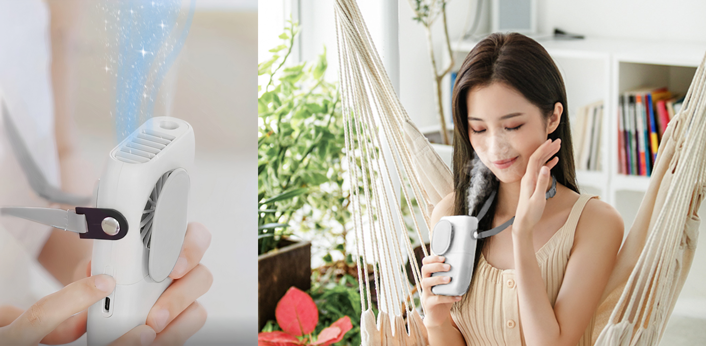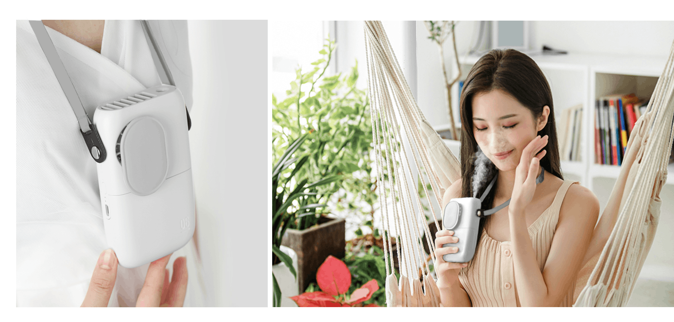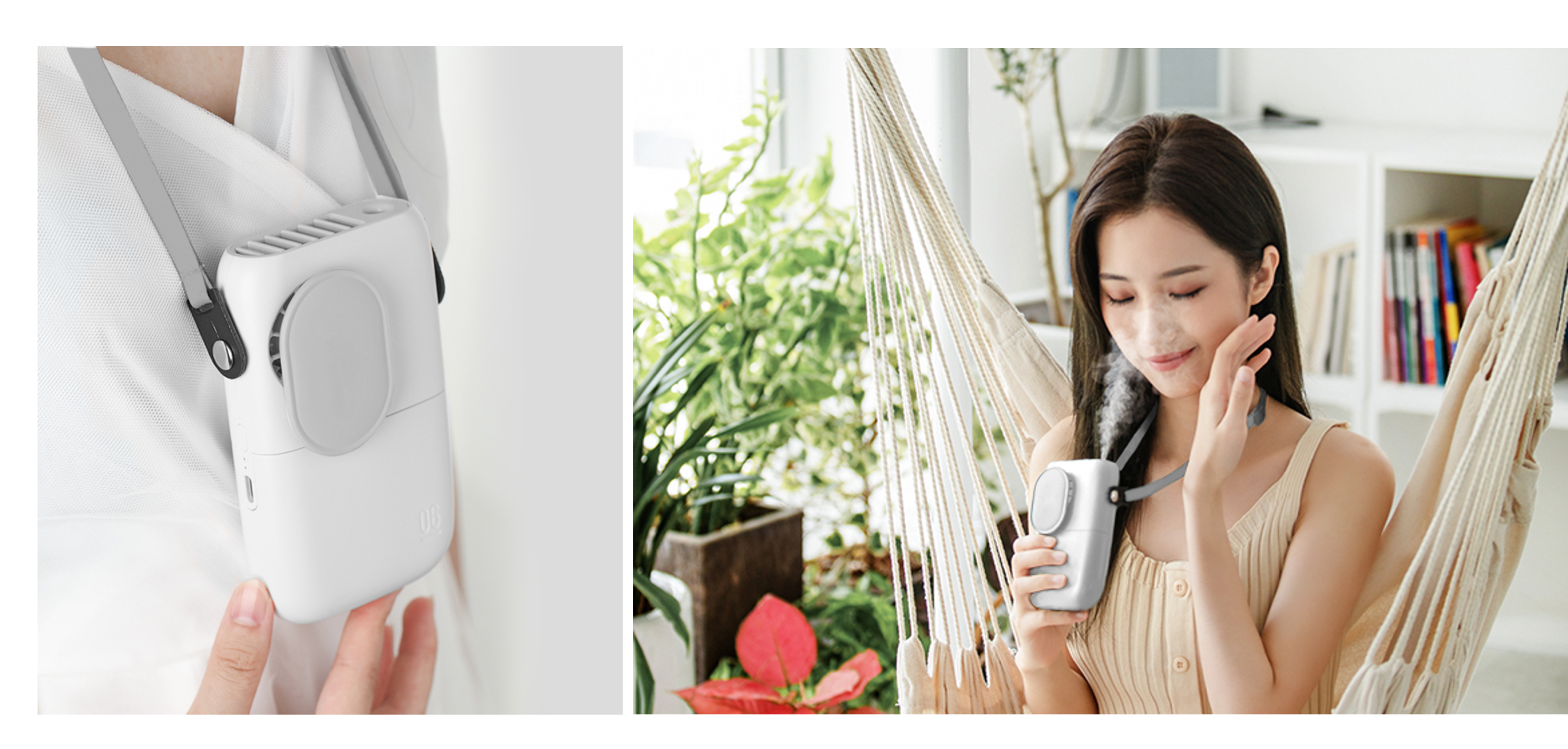 2. 首からかけると、ハンズフリーネックレスミスト扇風機に