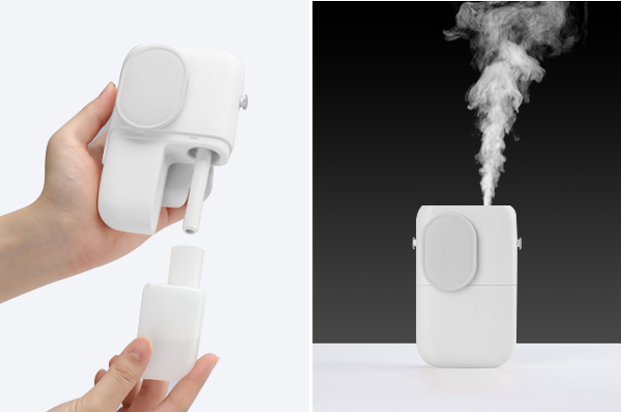 容量40mlの内臓ウォータータンクリザーバーがクーラー上部からミストを噴出。綿棒がクーラー上部に水を吸い上げます。タンクに水を入れ、閉じて、2-3分待つだけ。あとは綿棒全体が水を吸収したらミスト準備完了です。