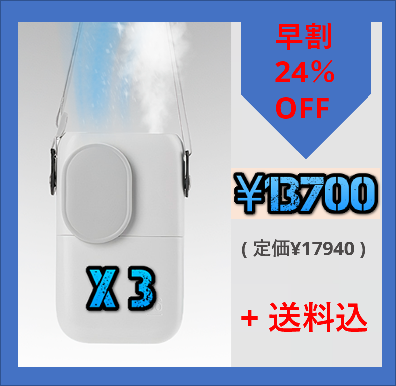 そして今回、弊社の新モデルをご紹介します。こちらがCool Human®のハンズフリーポータブルミストボディクーラーです。送風とミストを同時に使用!