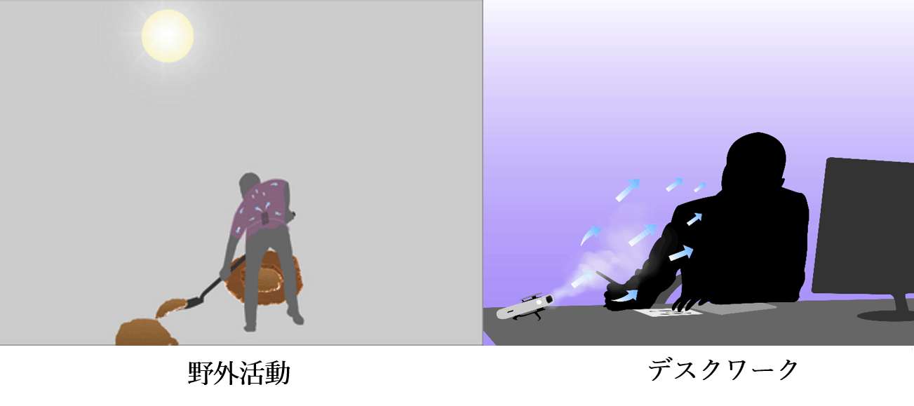 どんな状況でも冷却可能。風通しの悪い場所や湿度の高い場所でも上半身の冷却に効果的です。