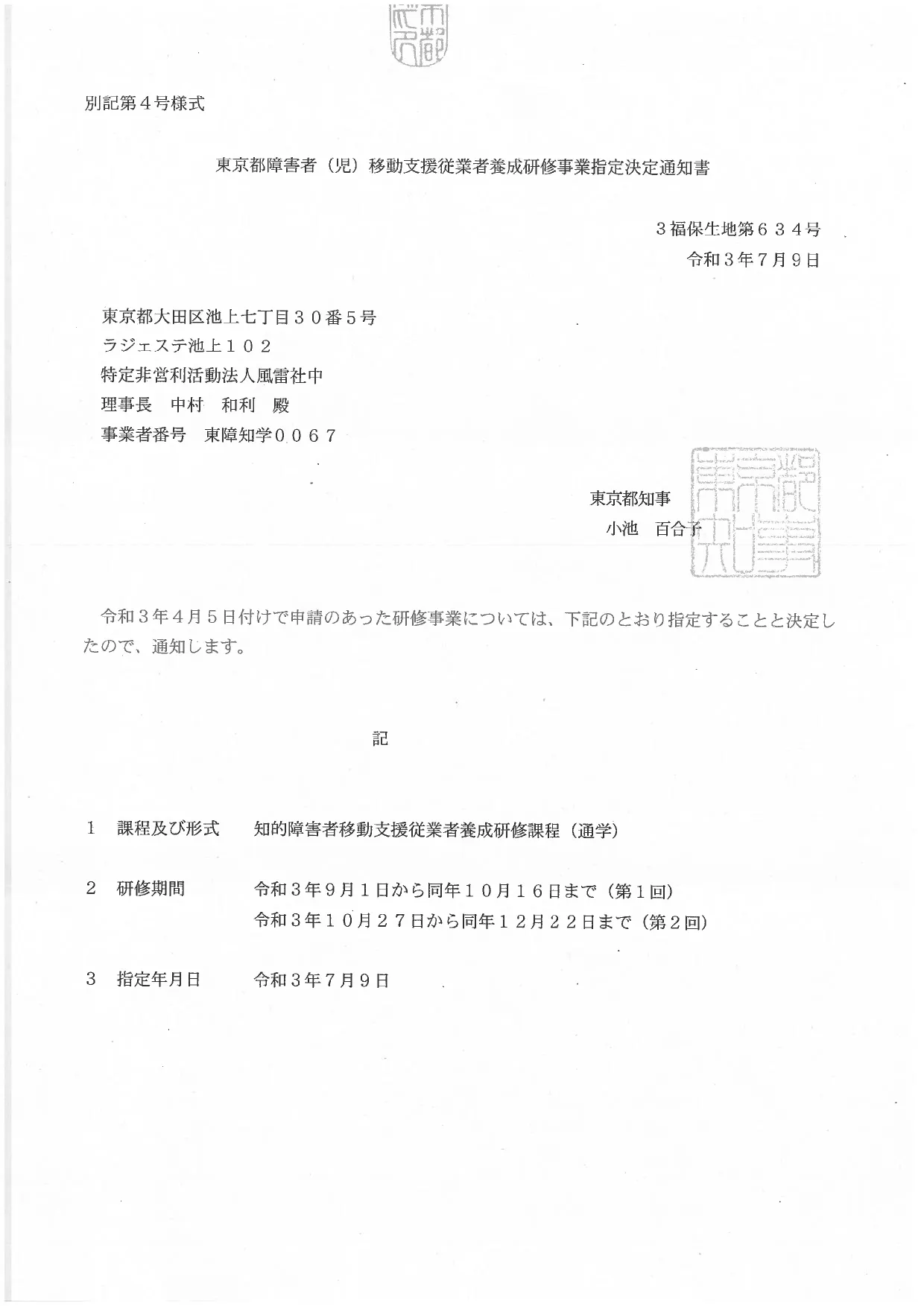 ガイドヘルパー養成研修は東京都の指定を受けて実施しています。