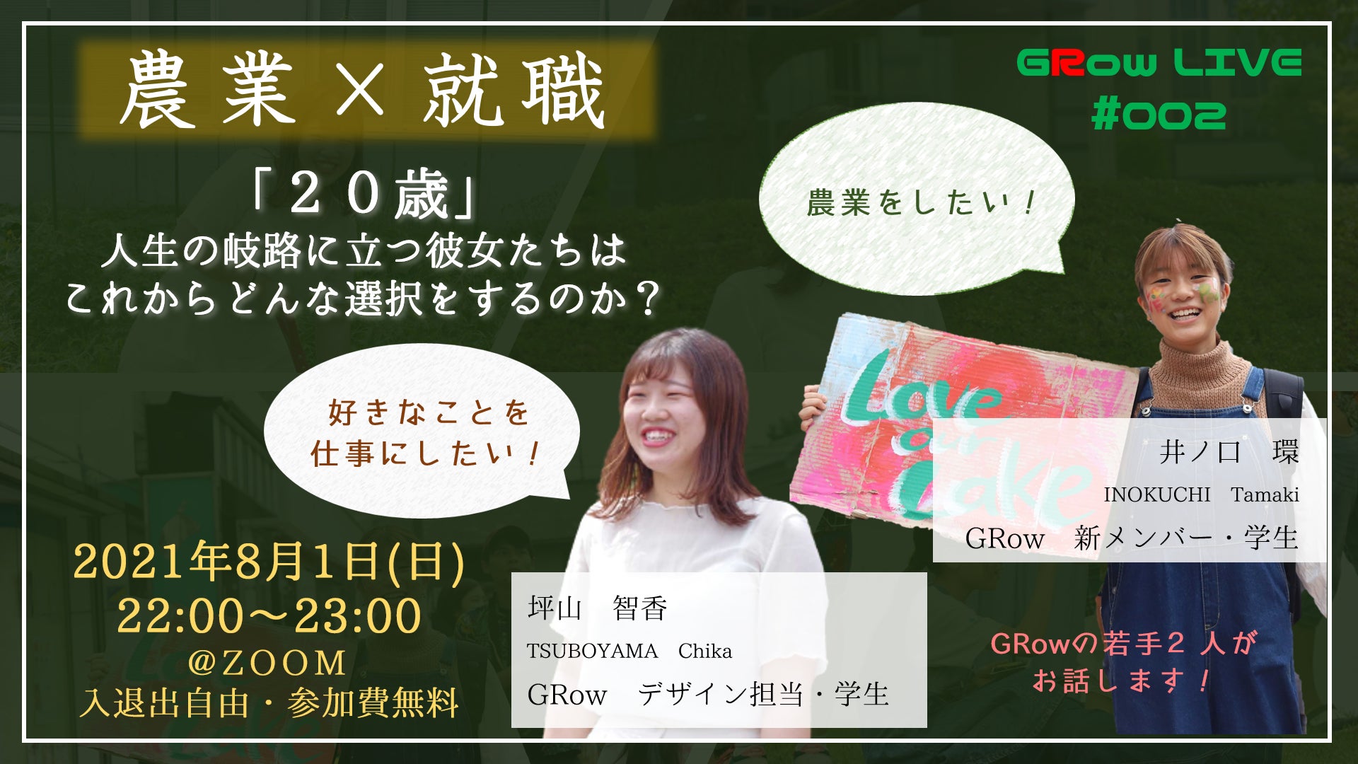 「20歳」という人生のターニングポイントに立つ2人のGRowメンバーが登壇します!