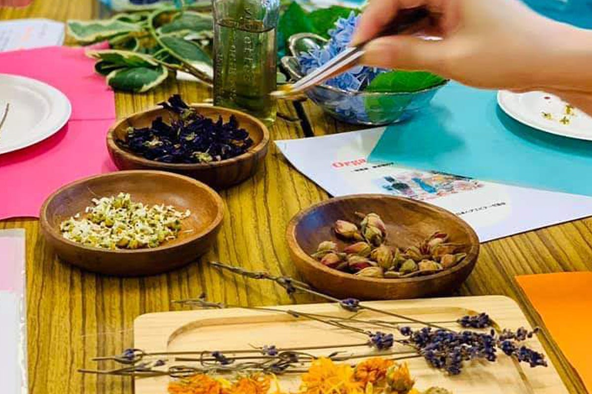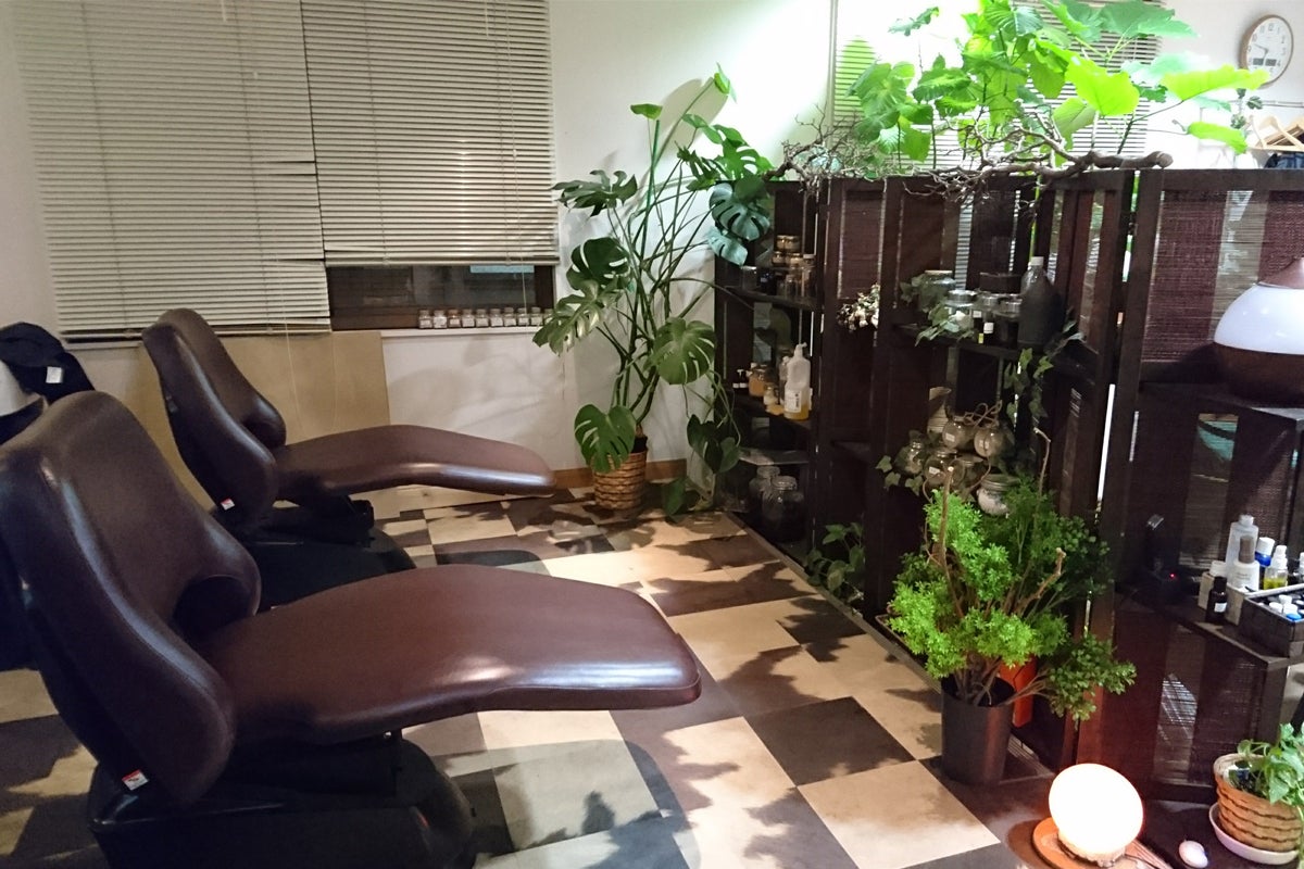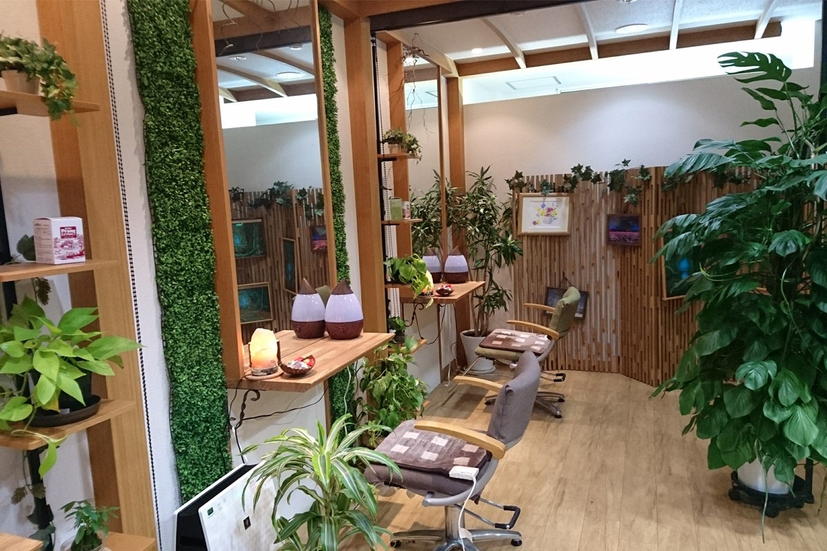 店内で使用する商材・化粧品等全て石油合成成分を使わず、土作りからこだわって栽培した植物を使い、産地・栽培方法・成分・抽出エキス・抽出方法すべて開示した消費者に安心な商材です。