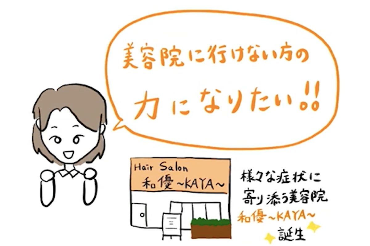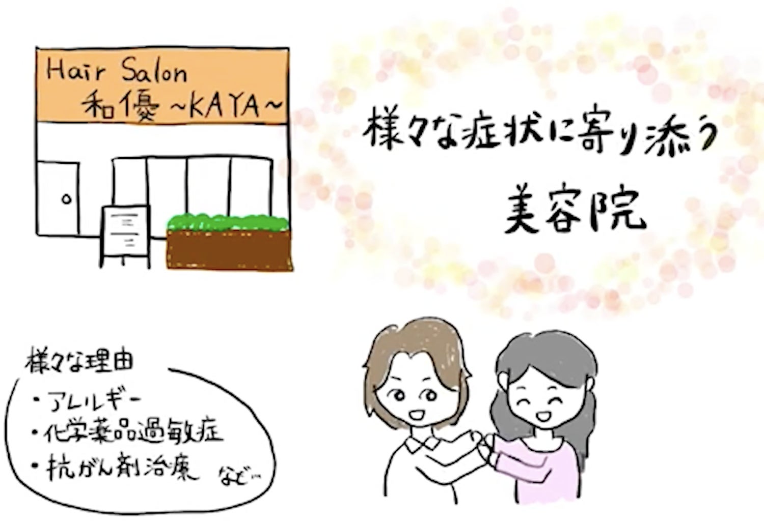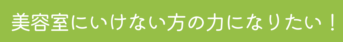 アレルギー・投薬治療・病気やケガなど様々な理由で外見に症状があり、オシャレを楽しむことができない方、相談できる場所が見つからない方、美容室に入ることができない方に寄り添い、「今できる美容」と「今できるおしゃれの楽しみ方」をご提案します。