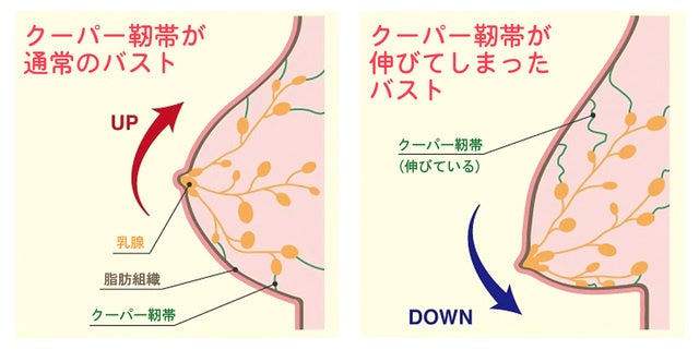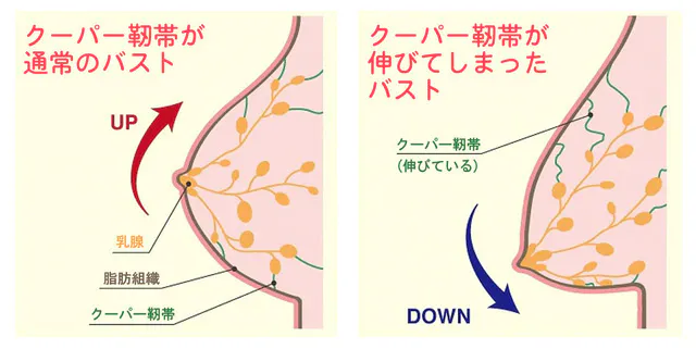 美しいバストを保つためには、クーパー靭帯が伸び切る前の対策が必要です。