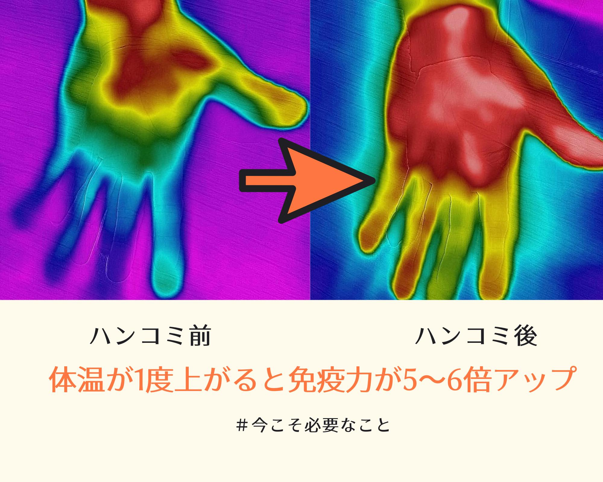 体温が自身の平熱より1度上がれば、免疫力は5~6倍に上がります。
