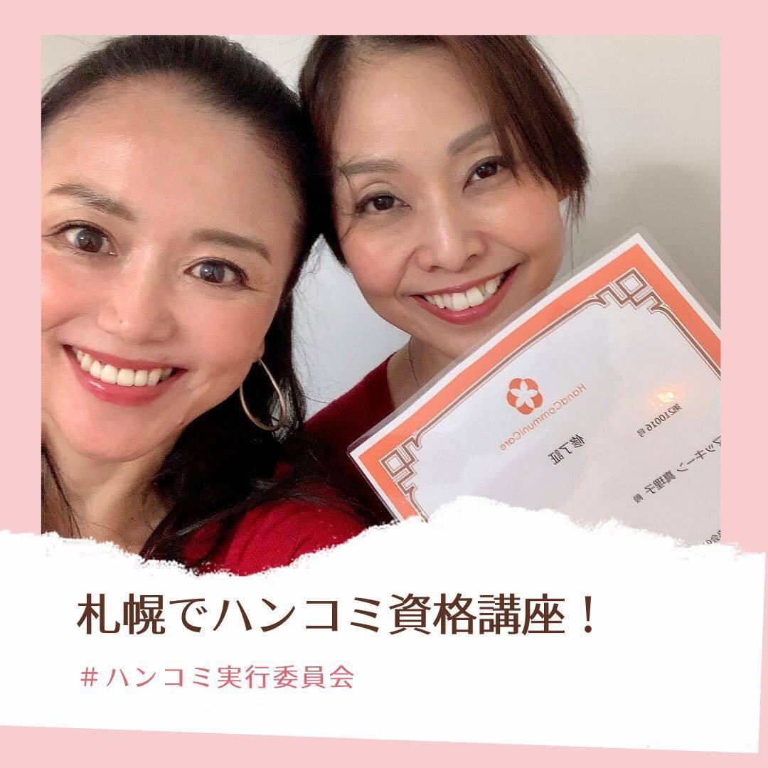 職業柄、高齢の方と接する機会が多く、認知症の予防や認知症の方のケアにも有効なハンコミに興味が湧き、無料説明会にも参加させて頂いていました。今回初級講座の受講が叶い、北海道では初めて、しかもルミ子さんにマンツーマンで教えてもらえることにワクワクしながらの受講。講座を受けて、ハンコミの成り立ちや効果、爪の手入れや消毒用のスプレーにアロマを使用していたり、手の扱い方においても施術される側にとことん寄り添ったおもてなしの心が感じられる素敵なセラピーだと改めて感じました。実際にハンコミの施術を受けて、冷え切っていた私の手がポカポカ温まり、血行が良くなっていくのがすぐに感じられると同時に腕全体が軽くなっていくのを実感しました。 ハンコミ10行程の流れを教えてもらい実際に行ってみて、力加減や体の使い方等、難しさを感じながらも新しいことを学ぶ楽しさであっという間に時間が過ぎてしまったように感じます。ルミ子さんの熱意ある指導とハンコミの確かな技術。今回は初級講座でしたが、今後はADVANCE中級講座も受けて、自分の仕事にも生かしていけたらと思いました。