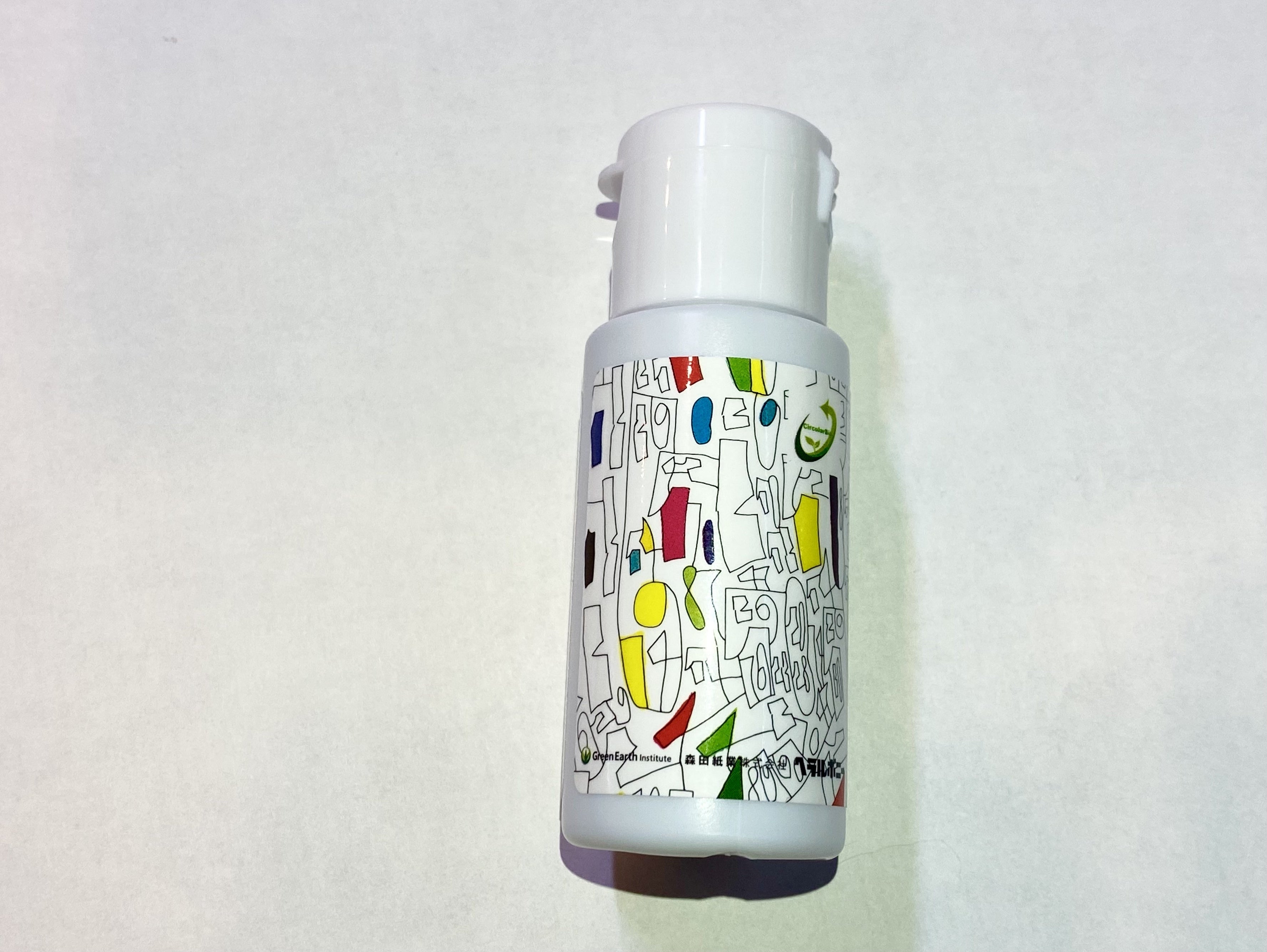「ヘラルボニィデザイン」破棄されるシュレッダーの紙ごみから作られたハンド消毒ジェルとなります。