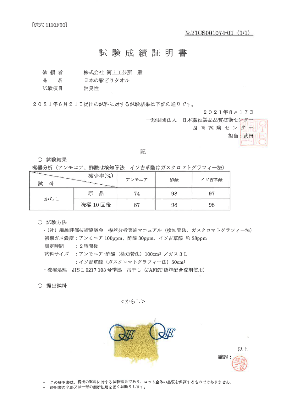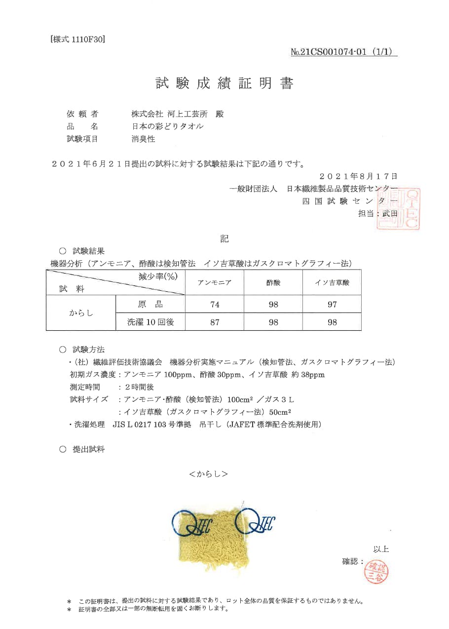 吸水性を保証する今治マークも取得済み:承認番号2021-103