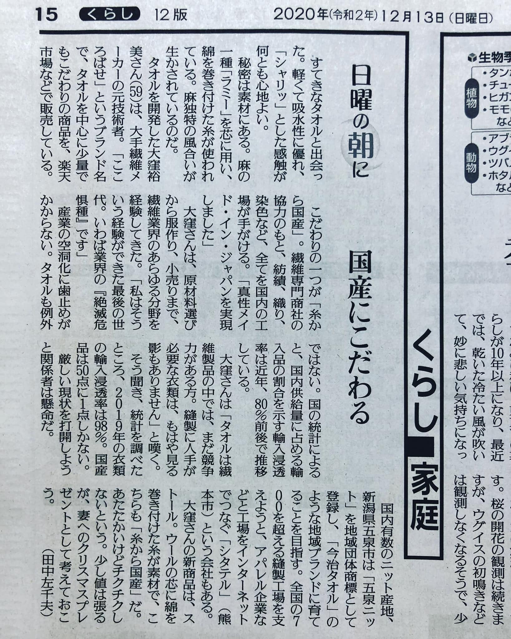 取材を受け、決意を新たに開発したのが今回の自信作、悠閑タオルです。ぜひご支援賜りますようお願い申し上げます。
