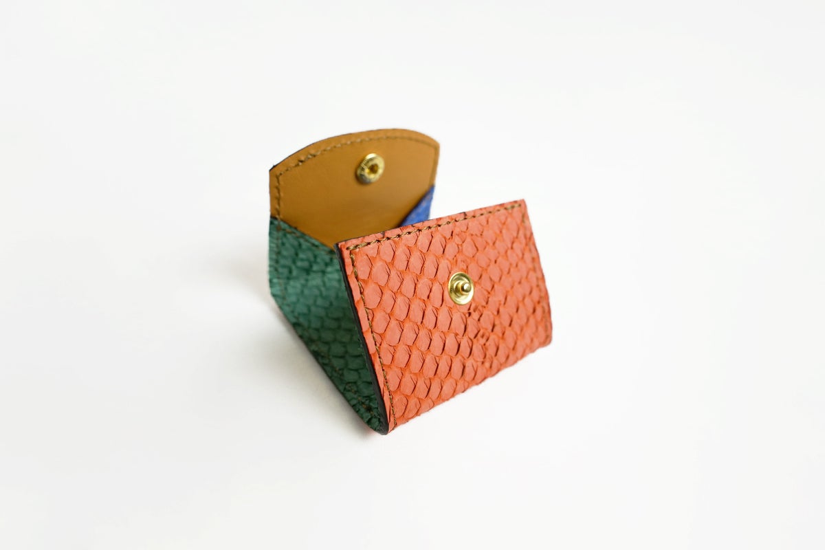 素材は日本で初めてフランスのタンナーから直輸入した鮭の革、サーモンレザーになります。