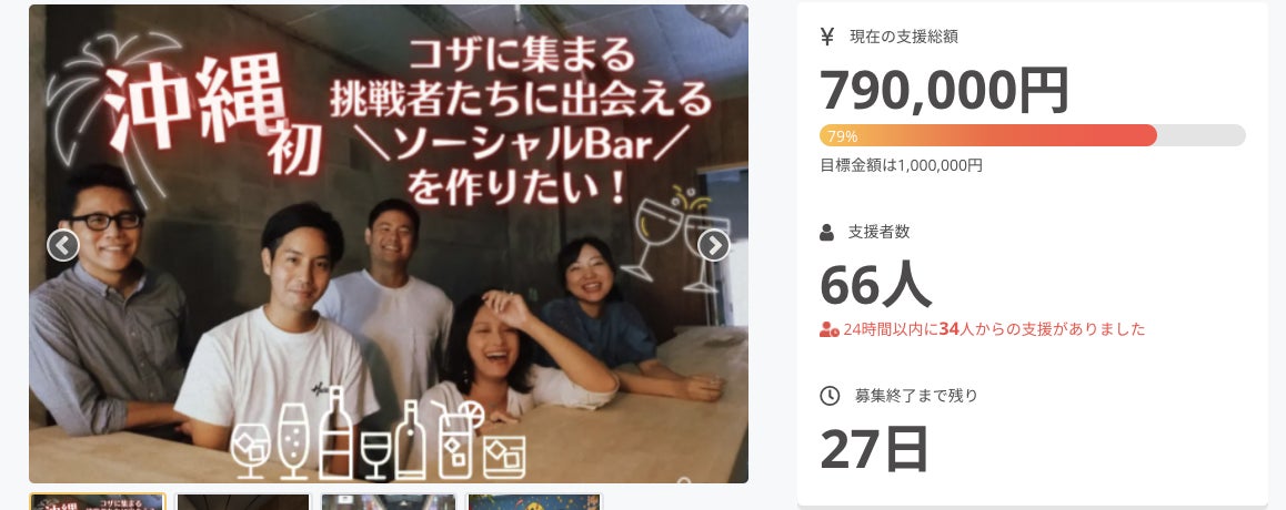 丸一日を終えて、現在【支援額790,000 達成率79%】となりました!