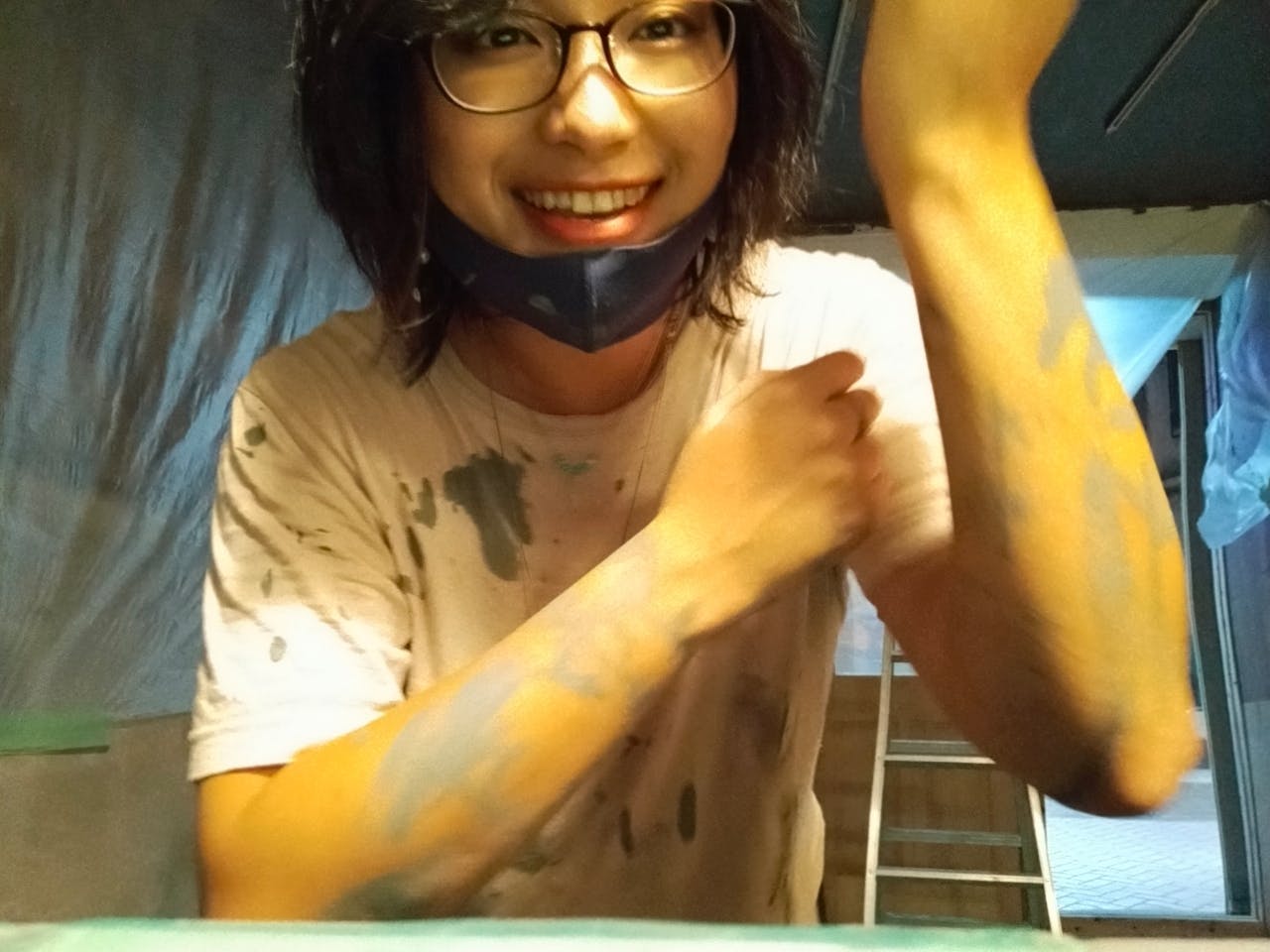 Tシャツで隠れてるはずなのに肩やお腹にまでペンキついてて、「なぜここに??????」と私が1番混乱しました。