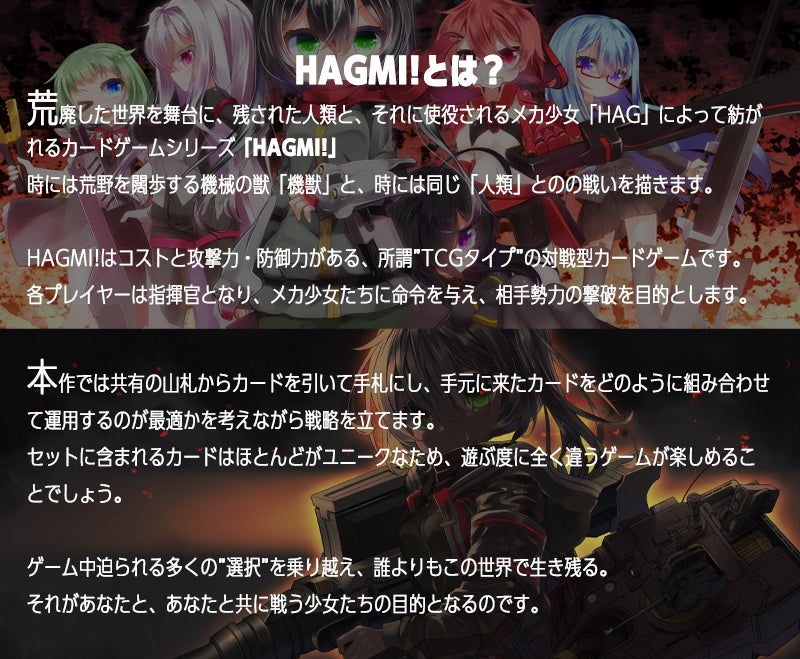 このプロジェクトは、メカ少女系カードゲーム「HAGMI!」最新作の生産を目標としたものです。