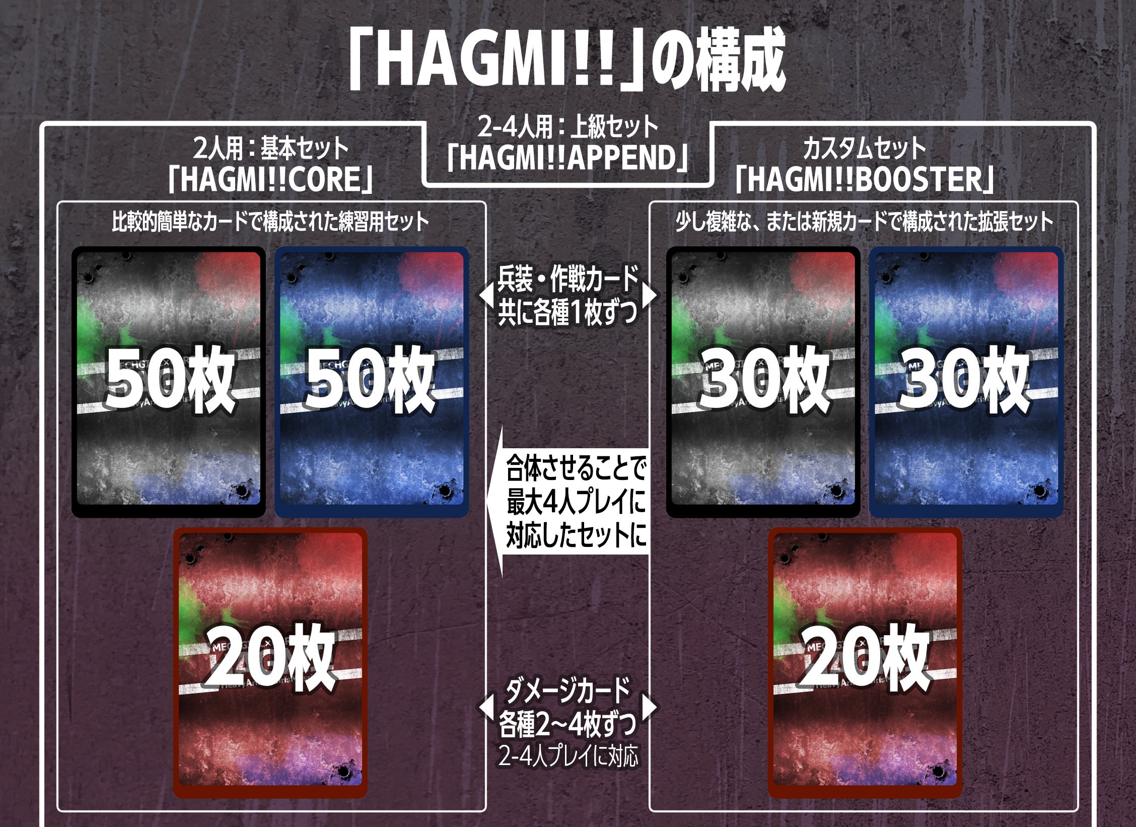 そして「CORE」と「BOOSTER」を合わせることで、2-4人で遊べる「HAGMI!!APPEND」が完成します。