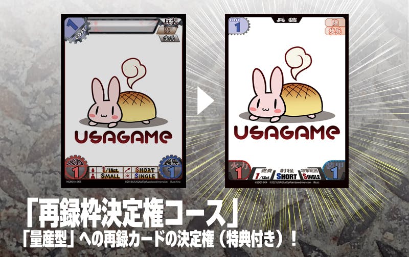 2021/07/26 20:35USAGAMEのひろです!プロジェクト終了まで残り3日です!未だ目標額は達成していませんが、ここで各リターンに追加アイテムを設けることを決定しました!こちらはパッケージ用仮イラストをカード化したものです。能力等は決まっていませんが新規のものとなり、セット内には含まれない「タクティクス」用のカードとなります。こちらは先日決定しました「ストレージボックス」用のイラストの元となったカードを、プレミアム版(キラカード)にしてのお届けとなります。こちらは「特製ストレージボックス」に付属するカードですので、ボックスが付かないリターンには追加されませんのでご注意ください!!プロジェクトも残り3日となりました。本プロジェクトは今後のHAGMI!のためにも、とても重要な企画です。なんとしても成功させたいと思っておりますので、応援と情報の拡散をお願いいたします。それでは、よろしくお願いいたします!USAGAME@Rainbowdimension ひろ もっと見るUSAGAME今後のロードマップとお願い