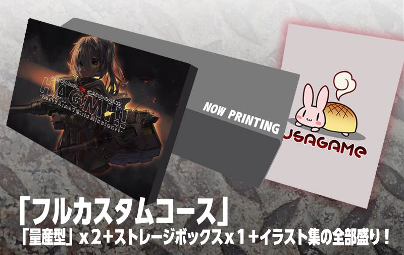 2021/07/20 21:15USAGAMEのひろです!プロジェクト終了まで残り9日ですが、現在のところ目標額は達成できておりません。ラストスパート、引き続きよろしくおねがいします!今回は本プロジェクトの成否によって変化する、今後のUSAGAMEの活動についてのお話をします。まずはこちらをご覧ください。これは当然の話ですが、本プロジェクトが成功すれば今後HAGMI!の知名度は多少なりとも上がり、より多くの人にこの世界に興味を持ってもらえると踏んでいます。それによって可能になる「スピンオフの小・中規模セット」を2種類開発予定です。「コードネーム:バーサス」「バーサス」はHAG同士の1対1での戦いを描いたミニセットです。兵装と武装カードを組み合わせ、命令をプログラムすることで戦うドラフト式対戦ゲームを予定しております。収録カードのうち兵装・武装カードはタクティクスでも使用でき、これに合わせて放置している「武装カードに関するルール」の再調整を行います。「コードネーム:モンスターハンター」機獣を倒して賞金を稼ぐ、拡大再生産的なパーティーゲームのHAGMI!です。プレイヤーは所有するHAGに様々な兵装のパーツを組み合わせ、オリジナルの兵装を構築します。機獣を倒して資金を得て、パーツや物資を購入してより巨大な敵を倒すゲームになる予定です。機獣討滅戦線とは相関関係になく、HAGMI!のルールを応用した5人以上でのプレイにも対応予定の独自システムのゲームです。こちらも、登場する兵装はタクティクスで使用可能です。これらは目標額未達の場合は開発を中断されます。USAGAMEには浮いてる資金が存在しないので、後述の「ガメマジ」へ力を注ぐ必要があるためです。また、成否如何に関わらず、新大型セットの開発は行われる予定です。「コードネーム:フロンティア」機獣討滅戦線の後、版図を広げる人類の新天地での戦いを描く大型ゲームセットです。フレーバーに合わせた新システムや、新要素などを満載した「ナンバリング作品」となります。システムは現在模索中ですが、より「世界」を広げるテーマに沿ったものにしたいなと思っています。こちらは成否に関わらず開発を行いますが、もちろん成功すれば長期的に見れば「フロンティア」の開発資金を得ることができ、より自由にロマンを詰め込んだ作品が作れることでしょう。「MINIシリーズリファイン」は、データ配布型セット「HAGMINI!」シリーズを再定義することを目標とした企画です。現状MINIのみで遊んでる人を確認できないことと、MINIのカードは単体で戦えることを優先したため歪なデザインになっているものが多いことが大きな理由です。様々なカードにアップグレードや調整を行い、「タクティクス用デッキ構築パーツ」としての最適化を行います。これらは今後のタクティクスシーンへの変化を与える重要な要素ですので、慎重に少しずつ開発する予定です。また、現在制作中でありHAGMI!じゃない方のボードゲーム「ガメマジ」こと「ガチャとメダルとマジカルガール」の制作進行への影響もございます。「ガメマジ」は「ダンジョン踏破系ローグライクハクスラRPG風協力型ボードゲーム」です。詳しい説明は省きますが、こちらは多くのイラスト素材が必要です。最悪自分で全て用意することは可能ですが、武器やモンスターなど、個人的に得意ではない箇所については外注を行いたいと考えています。今回のプロジェクトが成功すれば将来的に得られるであろう量産型での利益を元に、イラストの発注やプロモーションなどを行おうと計画しています。これによってHAGMI!シリーズとの同時開発が可能となり、自身への負担も軽減され、どちらの作品へもより力を注げることになるでしょう。未達成であればそういう計画も不可能であるため、HAGMI!の開発を縮小し、こちらへ力を注ぐことになります。どちらにせよゲーム出版にあたってはクラウドファンディングを行いますが、制作費や生活費などを確保するための前段作戦として「イラスト制作CF」を行う必要が出てくるでしょう。今回のプロジェクトの成否がUSAGAMEにとってとても重要な要素であることが分かって頂けたでしょうか?まだまだ作りたいものはたくさんありますので、今後ともゲーム制作は続けていきたいと思っております。全ての個人制作について、「需要があって大損しない限り続ける」ことにしていますので、HAGMI!やその他USAGAME製のゲームに興味がお有りでしたら応援いただけると嬉しく思います……!それでは、残り1週間と少しですが、何卒本プロジェクトをよろしくお願いいたします!!USAGAME@Rainbowdimension ひろ もっと見る