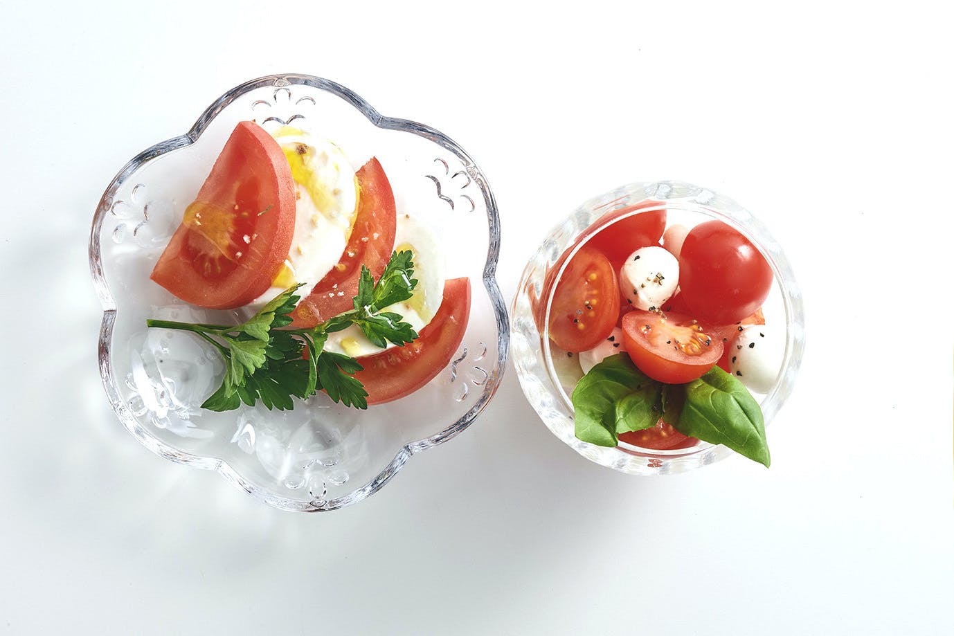 「トマトは低カロリーでさまざまな栄養成分が豊富な健康野菜。美肌効果や風邪予防に役立つビタミンC、老化を抑制するビタミンE、塩分の排出を助けるカリウム、腸内環境を整える食物繊維などをバランス良く含んでいます。